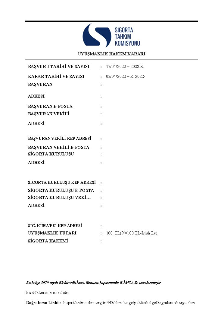 900 TL Tazminat Aldığımız Karar