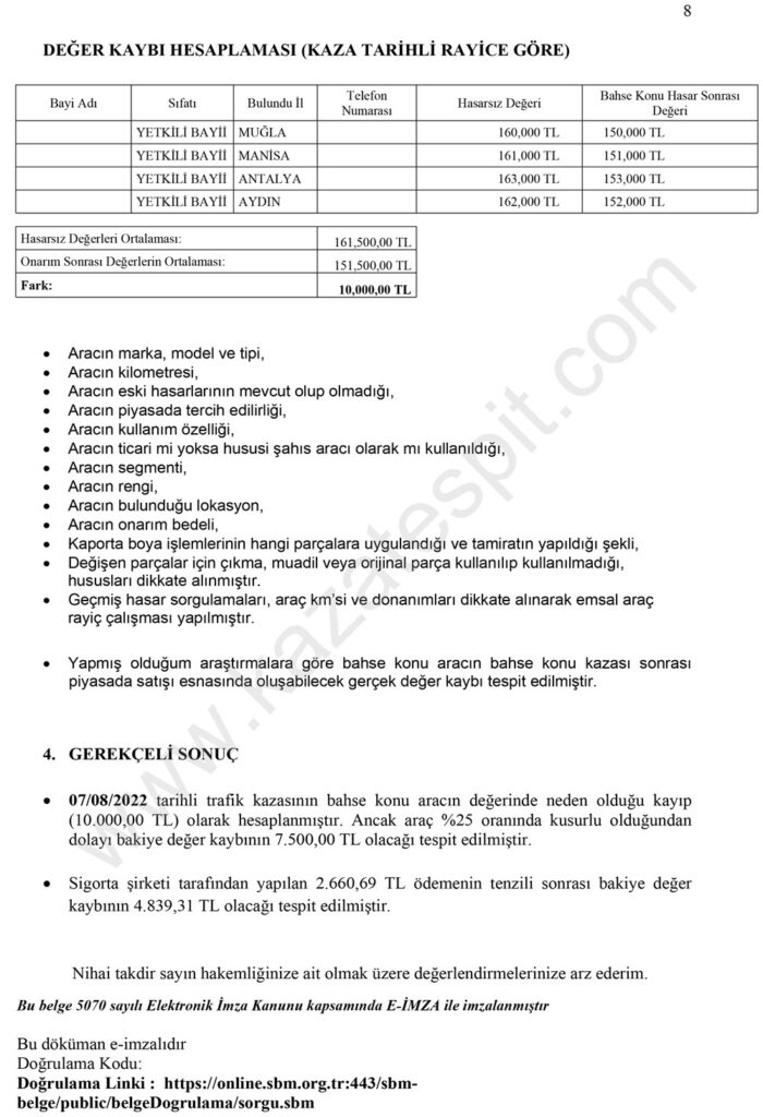 Değer Kaybı + Hasar Farkı Almaya Hak Kazandık